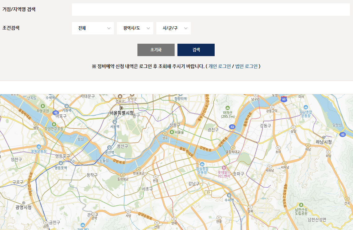 3. 지역명으로 블루핸즈 예약방법 및 위치 검색